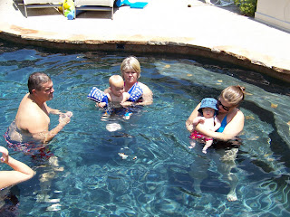 Harris is great! He is such a happy baby all of the time. He'll be 4 months on the 11th of Aug. He has started laughing and rolling over. Maddox is the best at making him laugh, Harris loves his big brother!